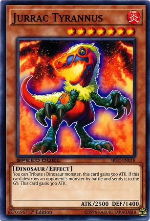 You can Tribute 1 Dinosaur monster; this card gain 500 ATK. If this card destroys an opponent's monster by battle and sends it to the GY: This card gains 300 ATK.